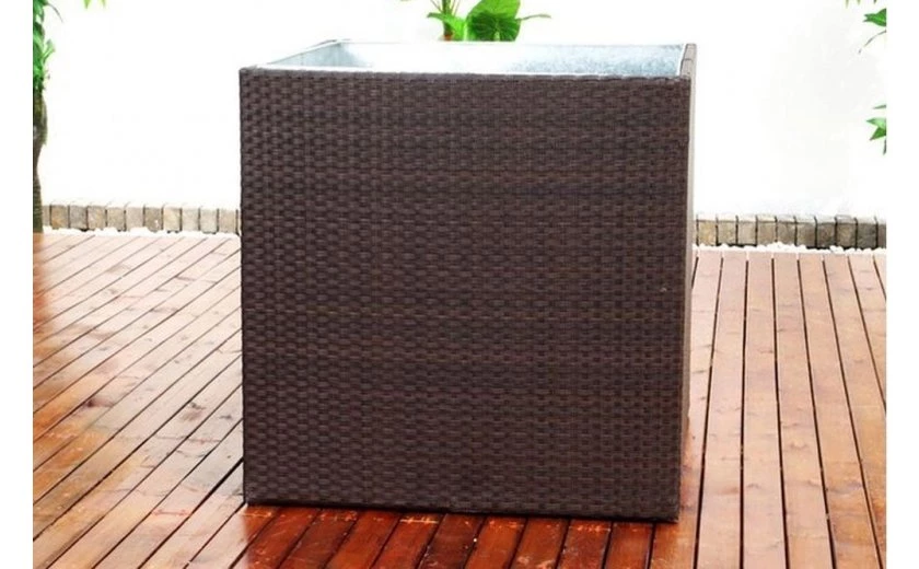 Кашпо можно использовать на улице или в помещении. Не требует особого ухода, не боится воды, не выгорает на солнце. Каркас цельносварной (алюминий).